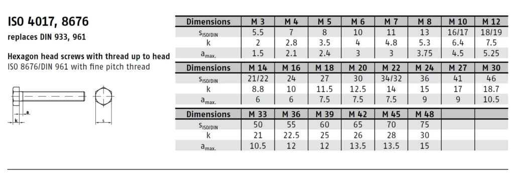 Tabla de dimensiones resumida – ISO 4017 / DIN 933